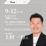 - 【KGIB9月例会】会社売却2回、総額200億円の資金調達を実現した、シェアリングエネルギー代表の上村一行氏が登壇▼例会情報は下記 項目 詳細 開催日時 9月 12日 開催場所 鹿児島大学稲盛会館(キミ&ケサ メモリアルホール) 登壇者所属企業名 株式会社シェアリングエネルギー 登壇者名 上村 一行 登壇者プロフィール 「屋 […]